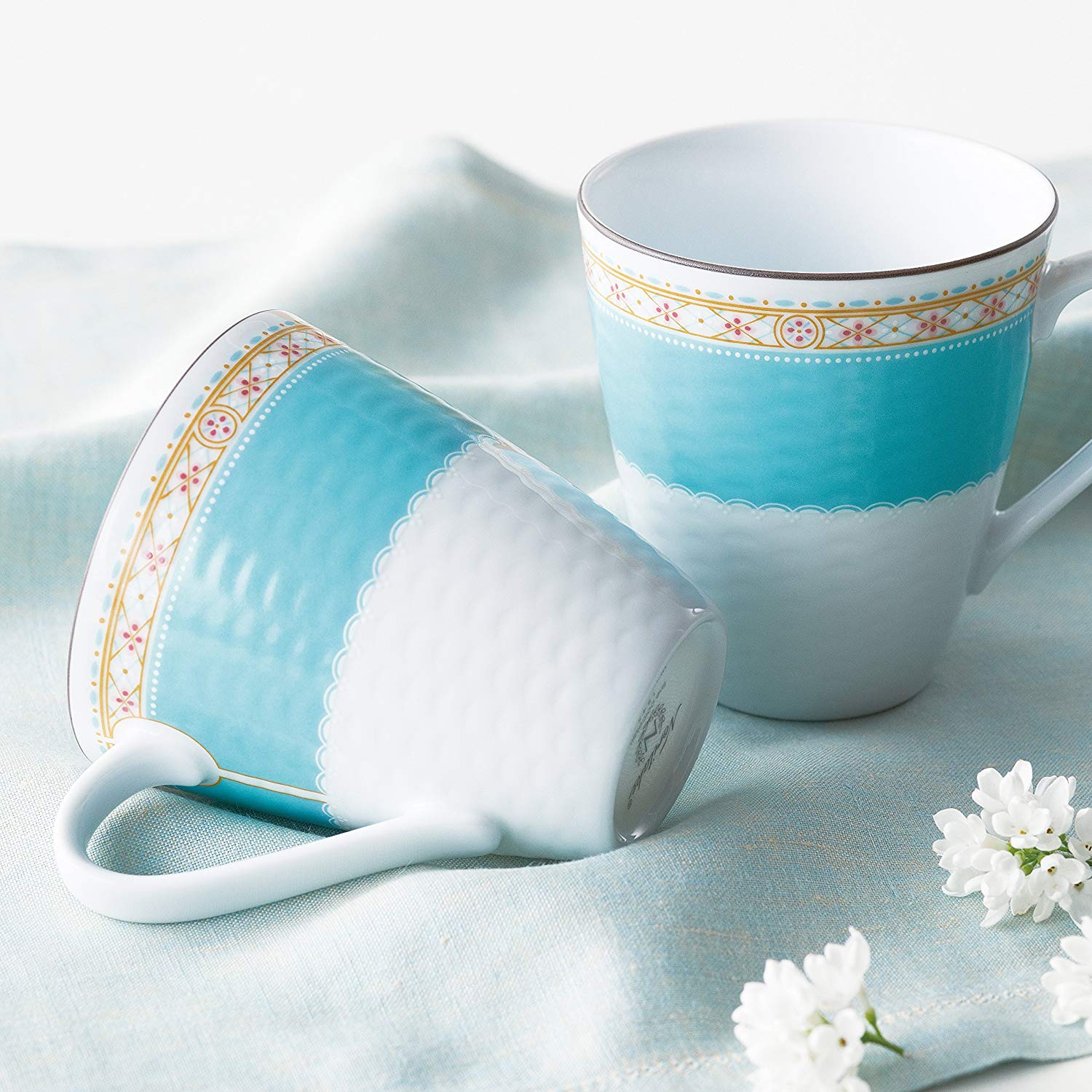 清涼なターコイズブルーに繊細な白盛りが愛らしく、小花をまとう菱文様は、和テイストの彩り。風薫るさわやかな季節に遊ぶ、楽しいひと時。軽やかなメロディーにリズムを刻んで