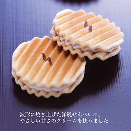 波形に焼き上げた洋風せんべいに、やさしい甘さのクリームを挟みました。