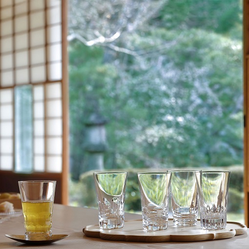 日本のライフスタイルのために開発された「グラス ジャパン」。すらりと細身で口にかけて優雅に広がる姿が美しく、バカラクリスタルらしい存在感がありながら和のテーブルにもマッチするサイズとバランスです。