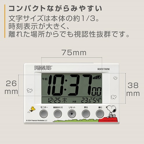 【RHYTHM】スヌーピー 目覚まし時計 デジタル電波時計